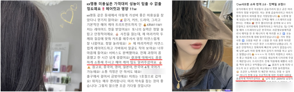 후기에는 “한국에서는 머리를 한 뒤에도 관리법을 배웠다”는 표현이 자주 등장하죠.