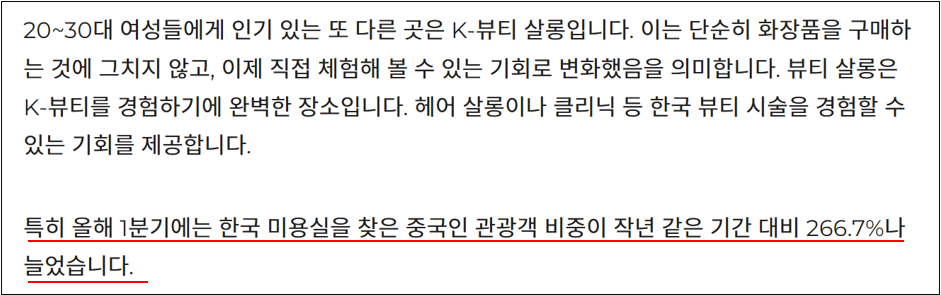 즉, 한국 헤어살롱에서 머리를 자르는 일은 ‘유행을 소비하는 것’이 뿐만 아니라 ‘유행의 근원에 참여하는 일’ 이 되며, ‘K-뷰티 스타일을 체험하는 경험’으로 소비됩니다.